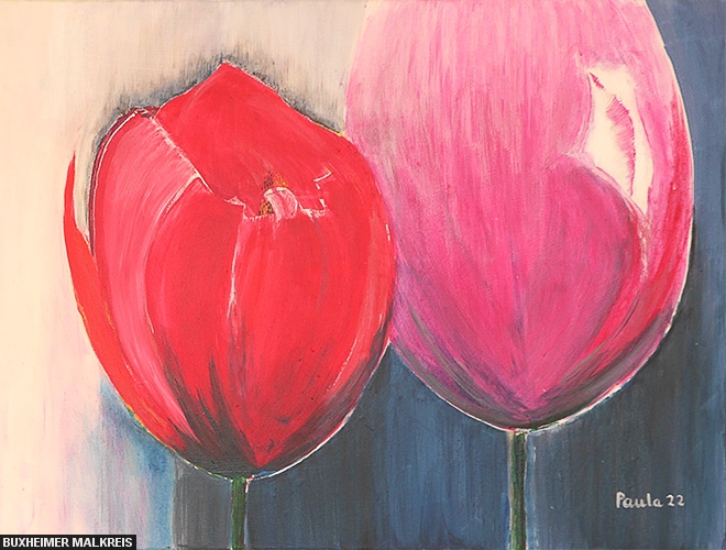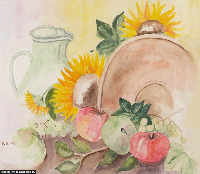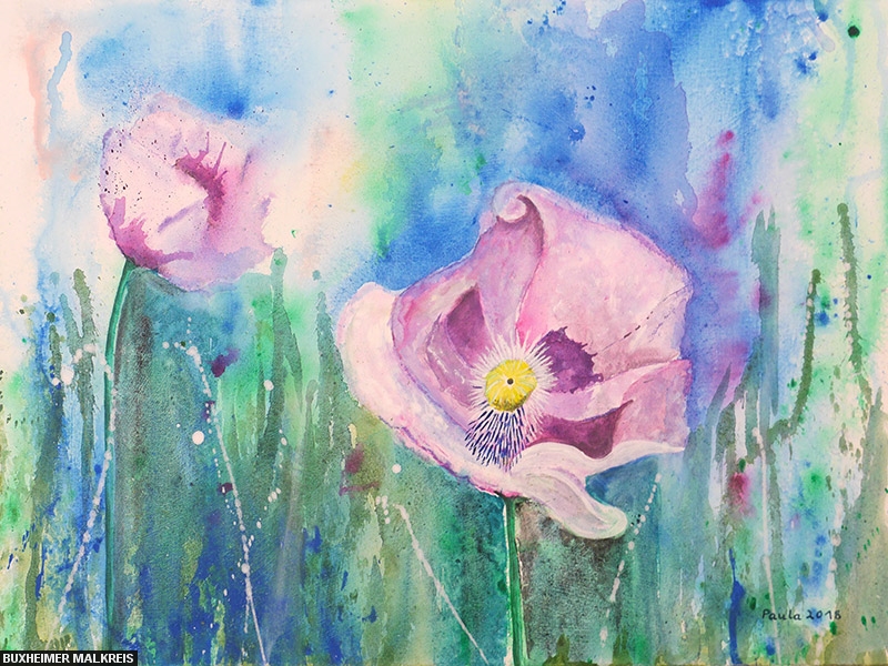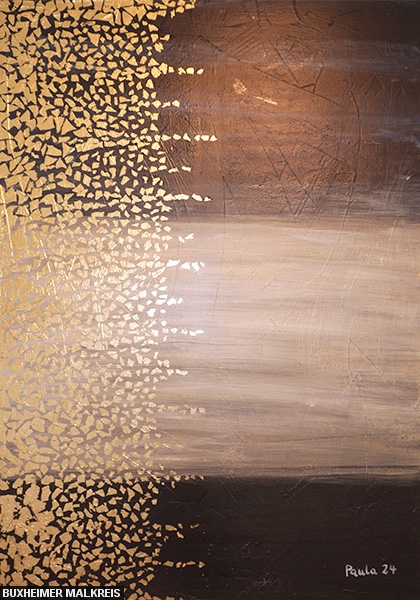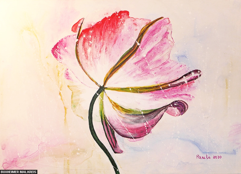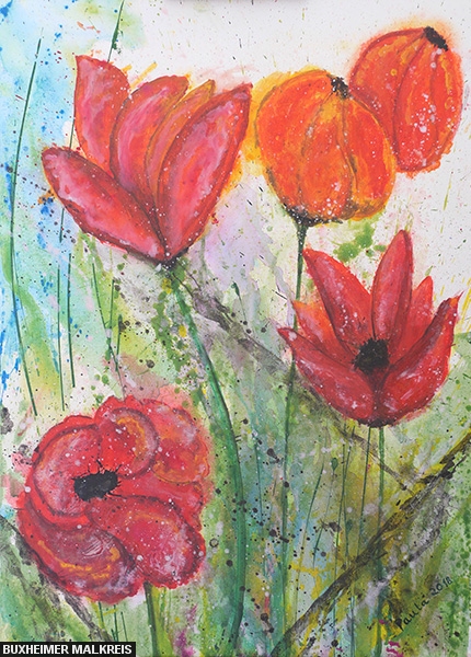 Abgemähtes Ährenfeld - Acryl Abstrakt - Acryl, Schlagmetall Am Gartenzaun - Aquarell Am Meer - Acryl Anemonen - Acryl Apfelblüte - Acryl Blume in Blau - Acryl Exotikblüte - Acryl Fantasieblume - Acryl Früchtestillleben - Aquarell Frühlingswiese - Acryl Gartenidylle - Aquarell Goldener Wald - Acryl, Schlagmetall Halligen - Aquarell Harmonie in Rot - Acryl Herbst - Aquarell Herbststillleben - Aquarell Herbststillleben - Aquarell Hofidylle - Aquarell Kartausenkirche - Aquarell Lila Mohn - Acryl Malerstillleben - Aquarell Margeriten - Acryl Mohnblume - Aquarell Mohnblumen - Acryl Pfingstrose - Aquarell Phantasiewelt - Rost Rapsfeld - Acryl Stelldichein - Acryl, Schlagmetall Tulpenblüte - Acryl
