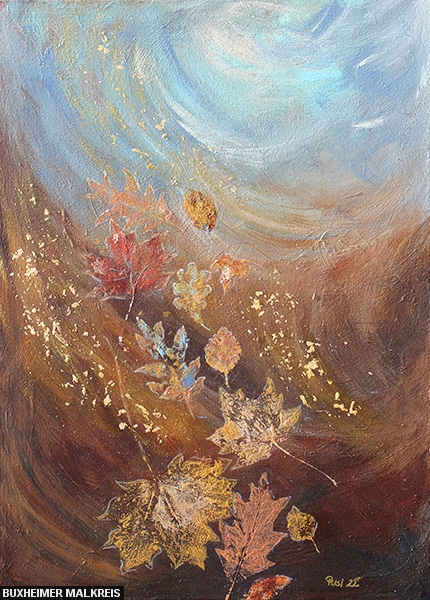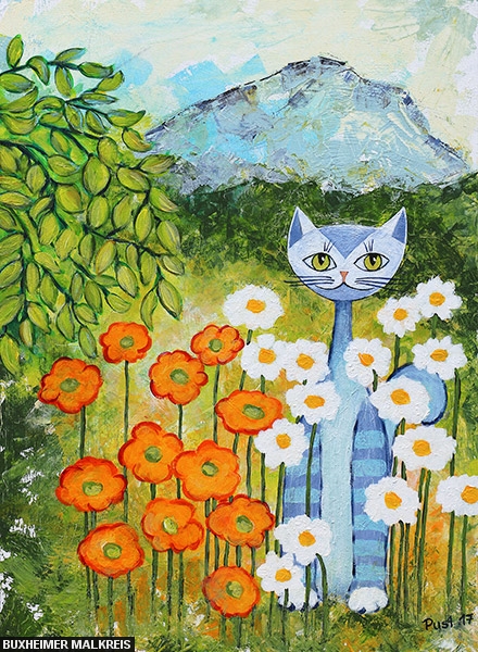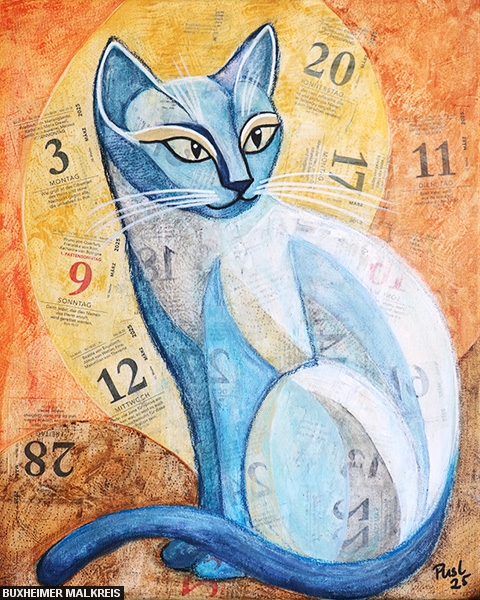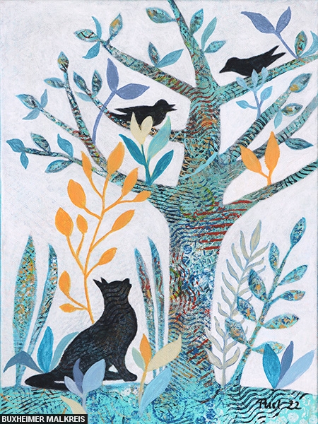 Alles im Blick - Acryl Auf hoher See - Acryl Blaue Blüten im Licht - Acryl Blütenfantasie - Acryl, Airbrush, Strukturpaste, Goldstift Buxheim - Blick von Osten - Aquarell Sketching Cat and Crows - Acryl, Monotypie, Negativmalerei Der Weg ist das Ziel - Monotypie, Collage Eine Katze für jeden Tag - Acryl, Collage, Mischtechnik Einsames Herz - Rost, Patina Fröhlicher Herbst - Acryl Goldadern - Acryl Grumpy Cat - Acryl Hildegard - Acryl, Spachteltechnik Katz und Maus - Öl Katze liebt Natur - Acryl auf Holz Katzenmädchen - Aquarell, Zeichnung, Mischtechnik Leben auf Pandora - Aquarell Natürliches Schauspiel - Acryl, Spachteltechnik Ort der Stille - Acryl, Spachteltechnik Oskars Katze - Acryl Paris - Öl Pfauenfeder - Acryl, Rost und Patina Rebirth - Acryl, Mischtechnik Rote Katze - Acryl Sternennacht - Acryl Stürmisch - Acryl, Blattgold Verbundenheit - Acryl, Struktur, Mischtechnik Weißes Kleid mit Tupfen - Acryl Wild and Crazy - Acryl, Mischtechnik Zur Ruhe kommen - Acryl