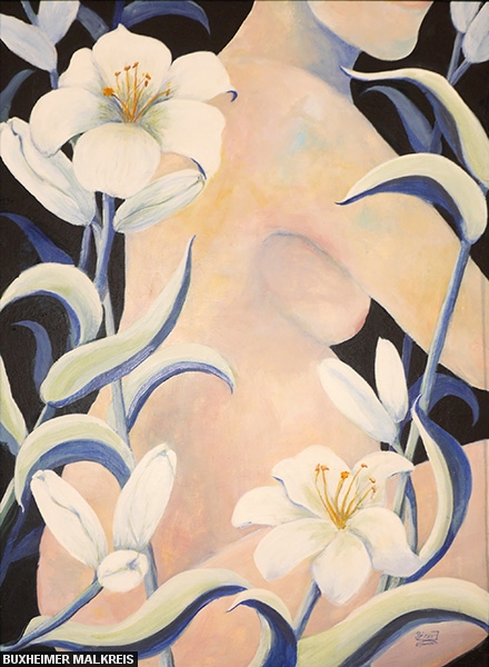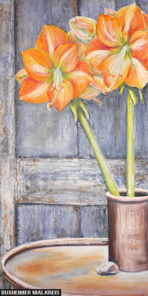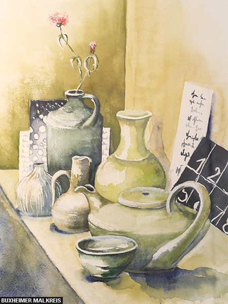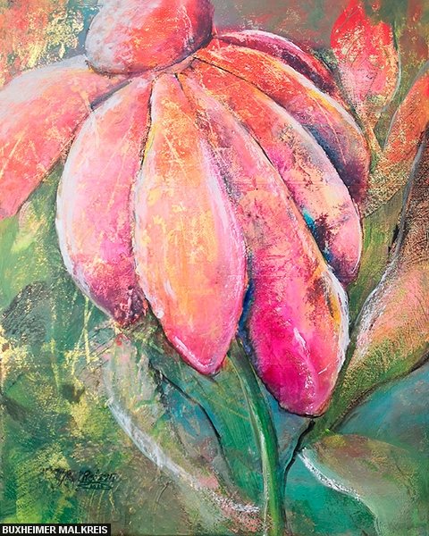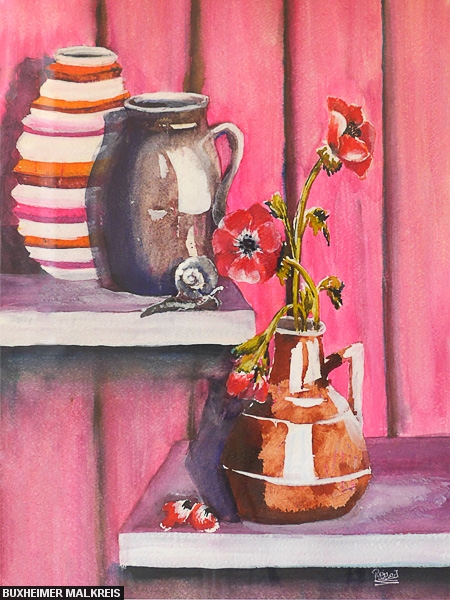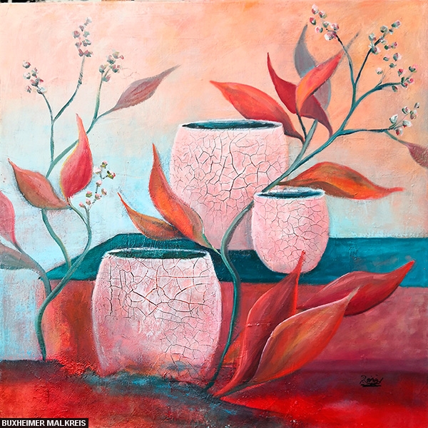 3 Phasen des Lebens - Aquarell Amaryllis - Acryl An der Günz - Aquarell Auf der Walz - Acryl Blühendes Leben - Eitempera Buxheimer Weiher - Aquarell Der Erzähler - Tempera Die Farbe Pink - Aquarell Die Kämpferin im Sturm . Öl Fahrt ins Glück - Acryl, Collage Feuer-Rot - Acryl, Struktur Frühlingsbote - Acryl, Öl Frühlingsbote - Tempera auf Holz Gelee - Öl Genuss trifft Tradition - Acryl Glücksbote - Acryl Grün-Streifen - Aquarell Liebe in Rot - Acryl Lost Places - Öl Mädchen im grünen Stuhl - Öl Neugierde - Aquarell Pause im Park - Eitempera Ritterstern - Acryl Silentium - Acryl Sonnenhut - Mixed Media Sprung ins Glück - Tempera Staffelsee - Öl The King - Eitempera Vasen - Öl Zaubernuss - Acryl