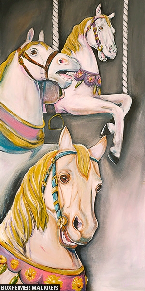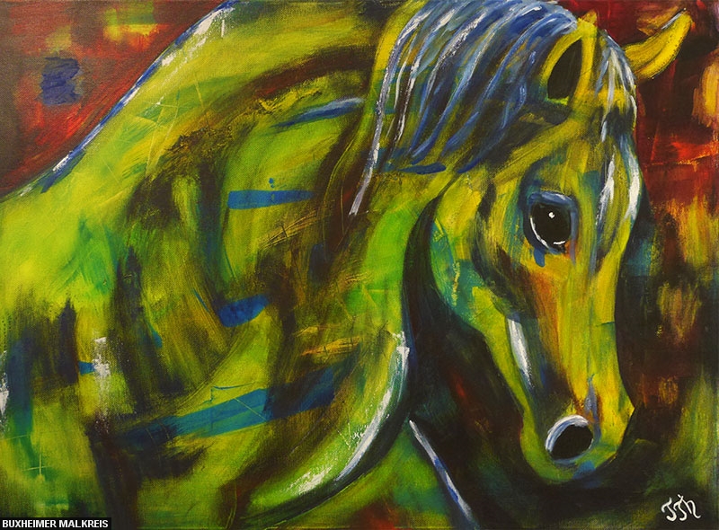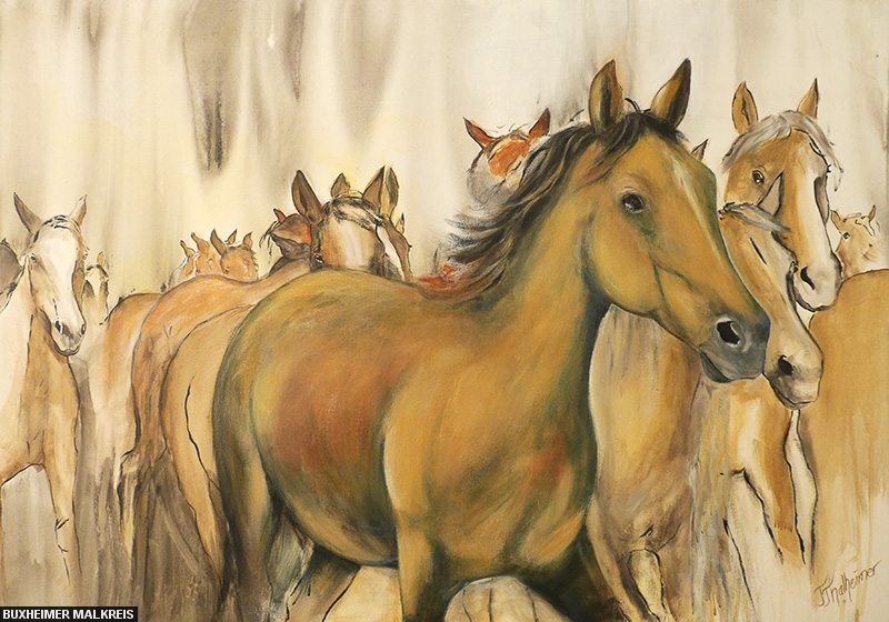 Pferdkopf - Powertex Skulptur Reiterin - Acryl Spaziergang im Regen - Acryl Springreiter - Acryl Strandgut - Acryl Tancassos Leben - Acryl Tulpenfieber - Acryl Valentina - Powertex Skulptur Versteckt - Acryl Wildlife - Eitempera Wintertraum - Acryl Zauberwald - Acryl